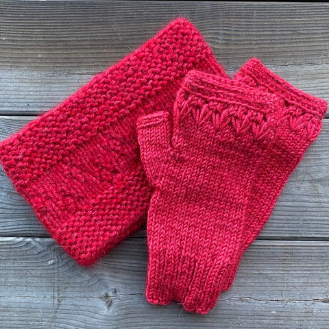 Sett med lue og pulsvanter /pulsvarmere, håndstrikket, nye