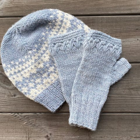 Kr 580,- for sett med lue og pulsvanter med tommel +evt frakt