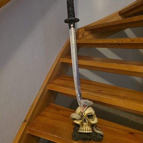 To like, store dekorative sverd, ca. 100 cm lange, selges kun samlet.