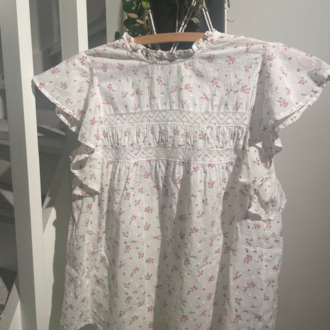 Ny Vero Moda Andre topper i blå farge, størrelse S, laget av polyester. Toppens design inkluderer korte ermer med volanger og en V-utringning med knappelukking bak. Passer for kvinner.