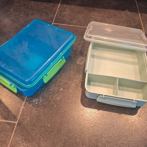 Praktisk gjenbrukbar matboks i silikon fra Compleat Foodbag; miljøvennlig, BPA-fri, kan vaskes i oppvaskmaskin. Omtrent ikke brukt.
