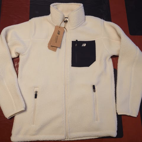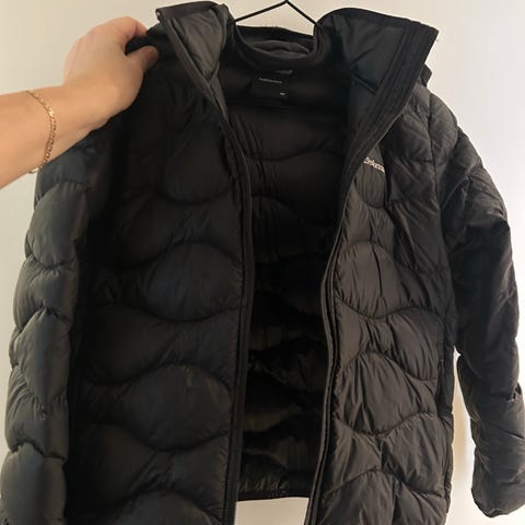 Fluffy og mjuk jakke, med mykje bruk igjen sjølv om den har nokre små feil.