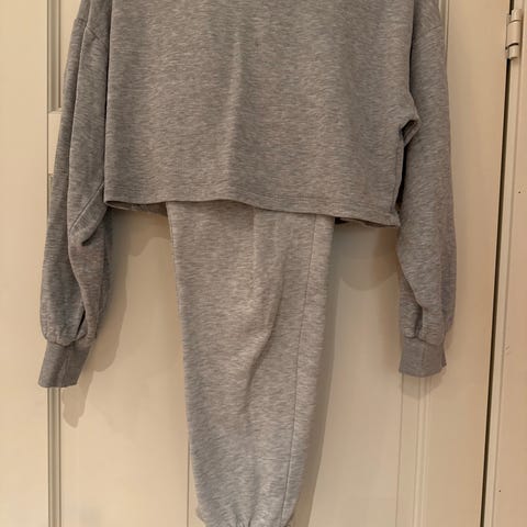 Selger grå joggedress fra gina tricot. Genser str XS og bukse str XXS.
