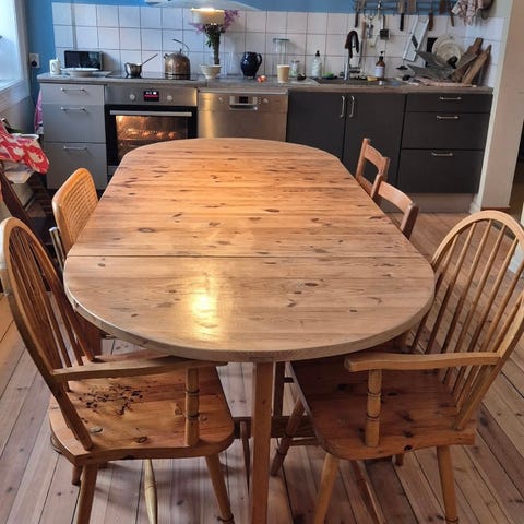 4 jærstoler i ubehandlet furu. Kan leveres 2. januar