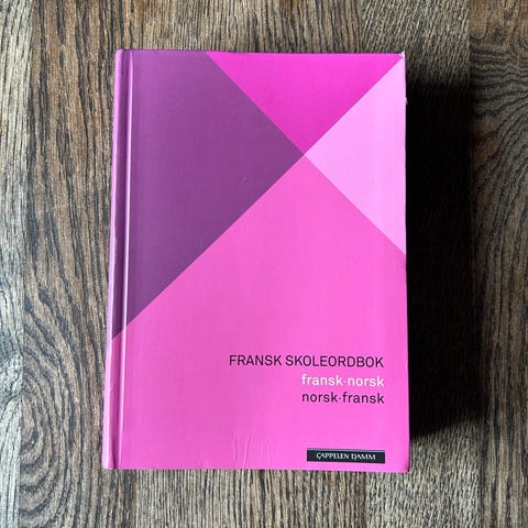 Skoleordbok bok med norsk-spansk og spansk-norsk ordliste.