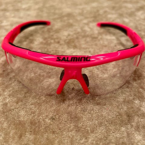 Salming Brille Sportsbrille i gul og svart farge. Designet for sportsbruk med lett og slitesterkt materiale. Inkluderer etui og stropp for sikker oppbevaring og bruk.