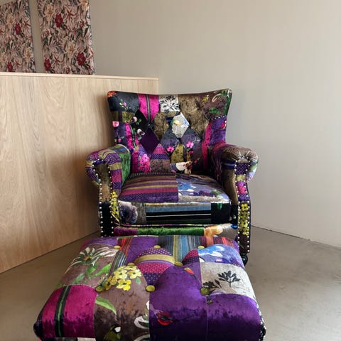 Vintage brun skinn lenestol kjøpt i Paris.