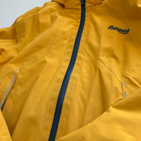 Materiale: 2-lags Bergans Element Active®. Vanntett (vannsøyle: min. 10 000 mm), vindtett og pustende. Fôret med mesh., Formsydd albueparti for økt bevegelsesfrihet. Borrelåsjustering på erme. Vannavvisende glidelås i front.