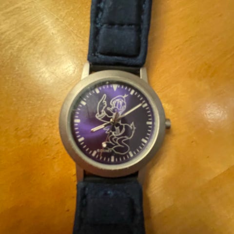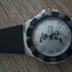 Swatch Unisex klokke med fargerikt armbånd med tegneseriefigurer. Klokken har analog urskive med tall og markeringer for minutter. Armbåndet er laget av tekstilmateriale med plastspenne. Egnet for daglig bruk. Trenger nytt batteri.