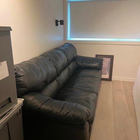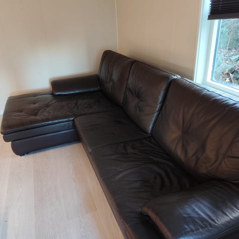 Begge sofa har flekker og har vært hund i, egner seg best som garasjesofa, den lyse sofaen mangler ben.