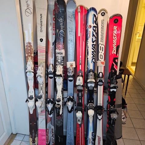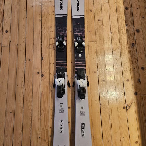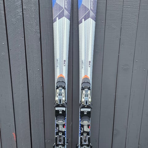 Atomic slalomski- 120 cm lange alpinski med Atomic justerbare bindinger.