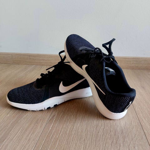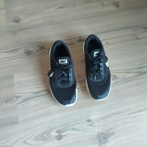 Nike barnesko unisex i størrelse 38. Skoene har svart overdel med røde detaljer og hvit såle. Egnet for daglig bruk og ulike aktiviteter.