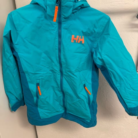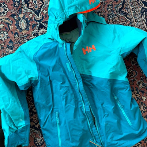 Helly Hansen vinterjakke str 152. Vindtett, vanntett og vattert jakke, forseglede sønner, avtagbar hette. Perfekt skijakke. Brukt noen få ganger på alpin, i år er den dessverre blitt for liten til mini.