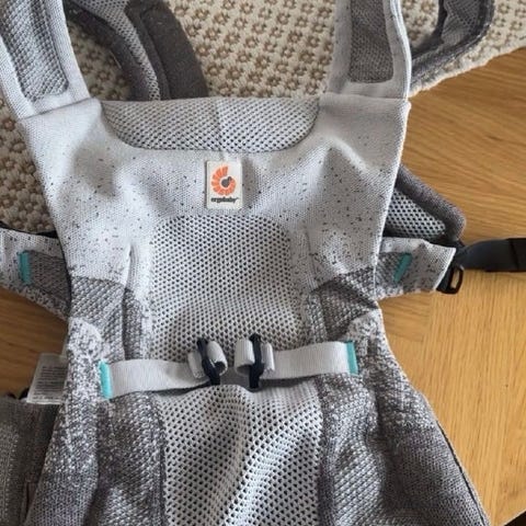 Ergobaby Omni 360 bæresele i blå farge inkludert vintertrekk/allværstrekk. Fra 3,2-20 kg. Både selen og trekket er nyvasket.
