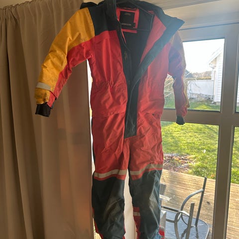 Noen slitasje nede ved beina, men ingen hull i dressen, se bilde