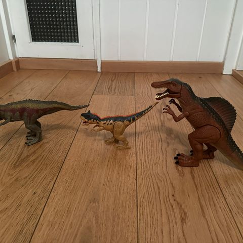 Kule batteridrevne dinosaurer. Den ene med fjernstyring. Supre leketøy for barn i 3-8 års alderen!