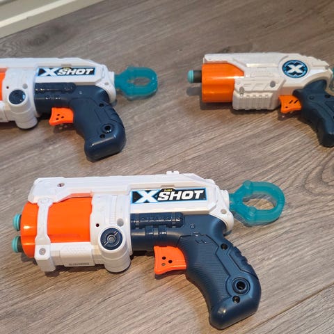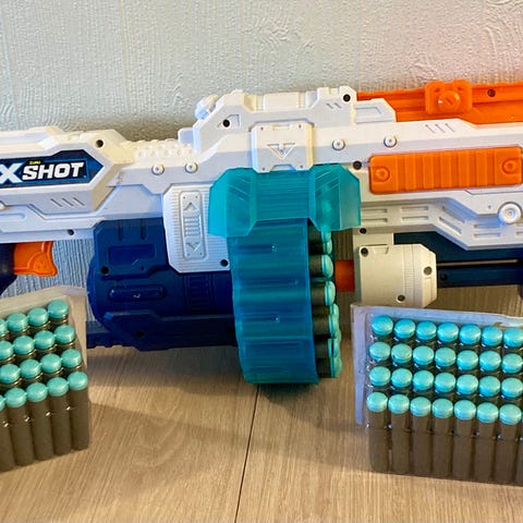 Zuru X-Shot Excel Hawk Eye blaster med kikkertsikte og skulderstøtte som kan skyte opp til 27 meter og kommer med 16 darts.