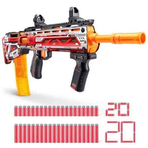 Blasteren har smidig design, med avtagbart kikkertsikte og skulderstøtte for stabilitet, slik at du enklere kan sikte inn målet ditt. Lad opp, pump våpenet og press inn avtrekkeren. Skulderstøtten har plass til å oppbevare flere piler for enkel og rask tilgang.