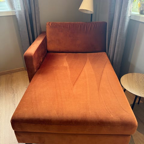 Selger en stilren og komfortabel sjeselong fra Ellos. Den er pent brukt og fremstår i veldig god stand, uten skader eller slitasje av betydning.