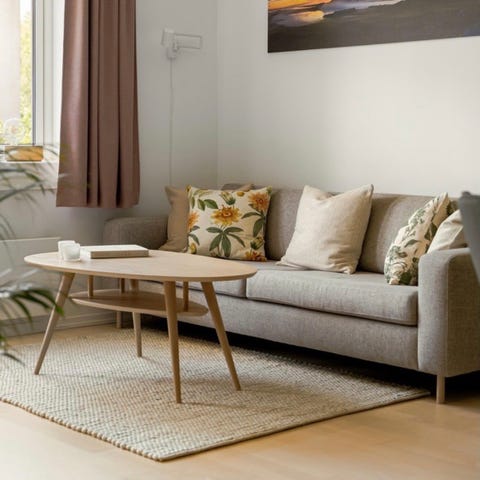RESERVERT. Scandinavia 3-seter med puff. Ser ny ut, ikke daglig bruk.