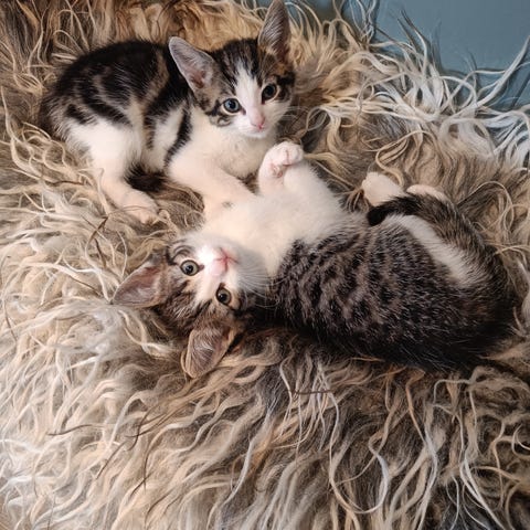 De er oppvokst på stua med barn og andre katter, så de er godt sosialisert.