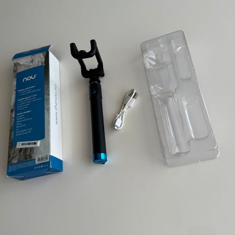 Selfie Stick med innebygd Bluetooth fjernutløser som gjør det enkelt å ta gode selfies. Justerbar vinkel og teleskopskaft (26-80 cm). Fjærbelastet feste som griper 58-80 mm, passer derfor de fleste telefoner. Integrert, ladbart batteri. Leveres med USB-ladekabel og håndrem.