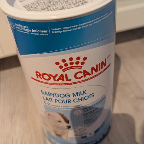 Helt ny med utløpsdato 23.10.2026. Kjøpte i tilfelle det ble bruk for dette. Ny pris 578,- på Anicura dyresykehus. Royal canin, neonontal milk for puppies.