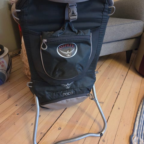 Selger en nesten ubruk bæremeis. Drikkeblære regntrekk og avtagbar ekstra sekk følger med.