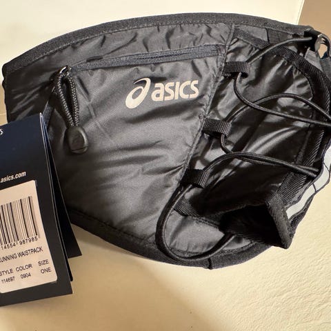 Rosa løpebelte med lomme til nøkler og lignende, og tilhørende flaske. Lett og sitter godt rundt livet. Kun prøvd et par ganger, og ble liggende senere.