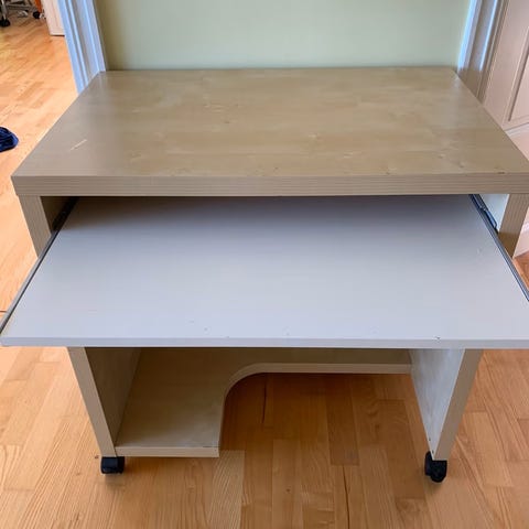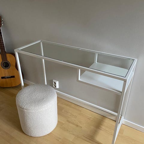Laptop-/ sminkebord i hvitt fra IKEA, selges grunnet flytting. Det har vært brukt som avlastningsbord/konsollbord. Det er noen merker på den ene platen, men de synes nesten ikke.