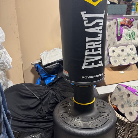 Så godt som ubrukt boksesekk selges med veggstativ.