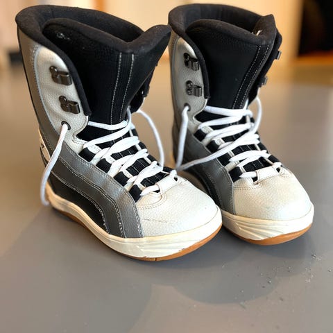 Selger brukte snowboardsko i str 37, men er små i str, vil heller si de er 35. Merke Shark.