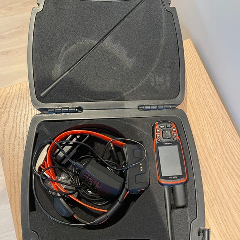 Garmin Astro 320 med kart, lang og kort antenne og original koffert. I tillegg er det et DC 40 halsbånd med lader til 12v "sigarett-tenner" i tillegg til vanlig stikk.