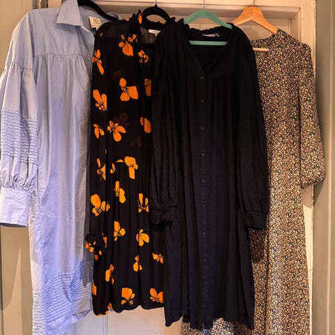 9 kjoler med merker som Ganni, Second females, InWear, Samsøe og HM. Str. S og XS. Selges samlet.