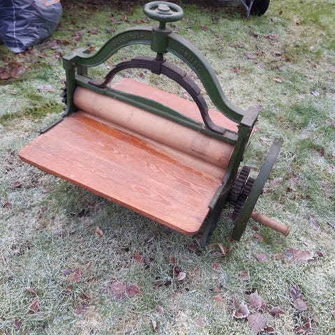 Den er slitt, men stødig. Kanskje noen vil oppjustere den. Hentes på Grim