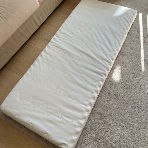God, robust og pent brukt seng med høye kanter på sidene til junior.