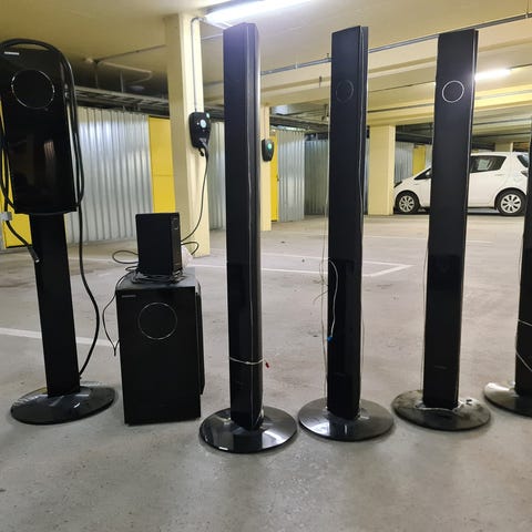 Denver bærbar høyttaler med integrerte lysfunksjoner. Designet for enkel transport med håndtak og robust konstruksjon. Passer for bruk ved utendørsaktiviteter og fester.