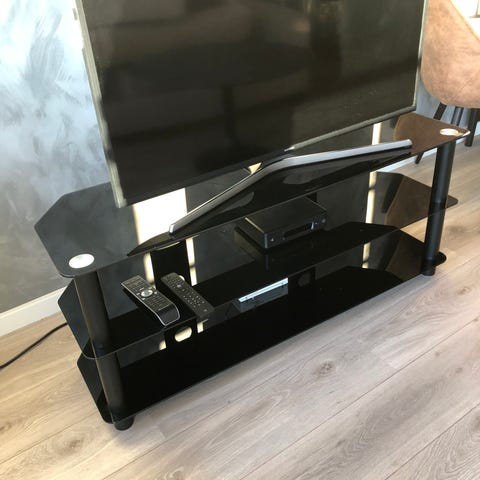 Pen og brukervennlig tv-/ stereobenk i glass.