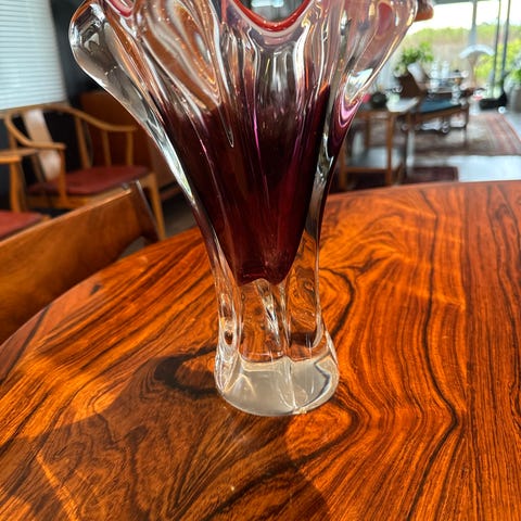 Dekorativ vase i brunt glass med gull/skimmer på utsiden.