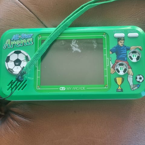 Spillkonsul med mange spill. Nintendo alternativ for små barn. Fungerer som det skal. Lades og lader følger med.