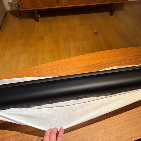 Sonos Playbar lydplanke i svart og sølvfarget utførelse. Designet for å gi forbedret lydopplevelse til TV og musikk. Kompakt og stilren modell som passer i ulike rommiljøer.