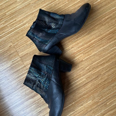 Hæl ca 6 cm. Fremstår som pent brukt, litt slitasje på bakre del av hælen.