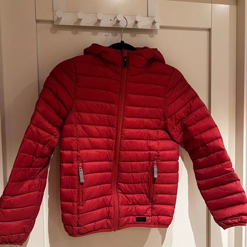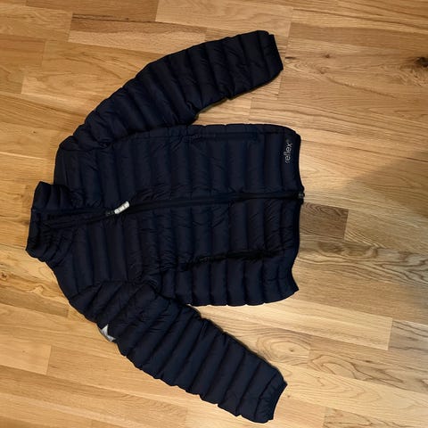 Marineblå Reflex jakke med rosa glidelåser. Pent brukt - så vidt synlig. Størrelse 140.