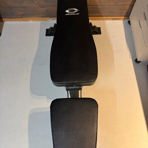 Justerbar treningsbenk med polstret sete og ryggstøtte. Benken har flere innstillingsmuligheter for tilpasning av treningsposisjoner. Passer til ulike styrketreningsøvelser og hjemmetrening.