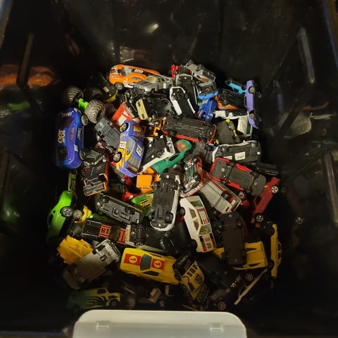 Hot Wheels lekebiler i ulike størrelser og farger. Settet inneholder flere små biler og kjøretøy i plast og metall, egnet for barn.