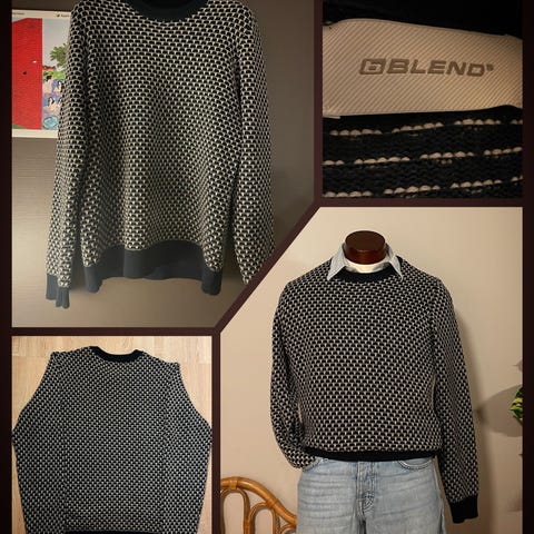Blend genser i størrelse M, farge grønn, laget av bomull. Genseren har rund hals og ribbestrikkede detaljer. Egnet som hverdagsplagg for menn.