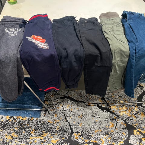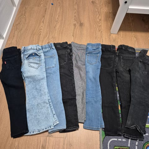 6 bukser fra merker som Polern O. Pyntet, Zara,Newbie og KappAhl. De er hele og rene, fra dyrefritt og røykfritt hjem. De er brukt i barnehagen, så flekker kan forekomme !