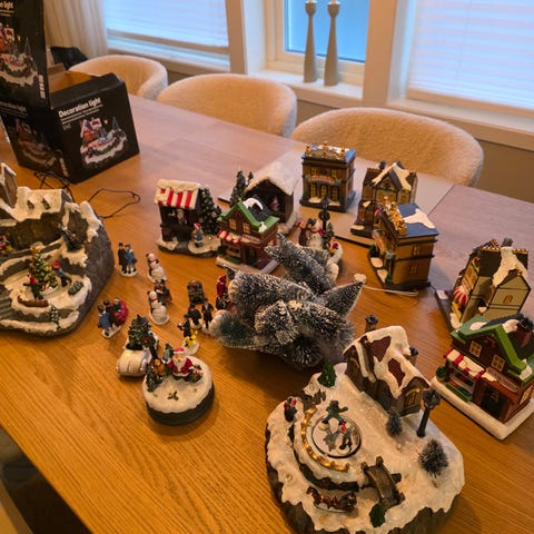 Hvite, myke «puter» formet som trær til å henge på juletreet. Jeg mener disse er kjøpt på H&M Home. Det er 8 stk, prisen er samlet for alle.