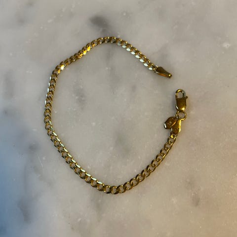 Kjede: Veneziansk kjede i forgylt sølv, 45 cm langt og 1 mm bredt