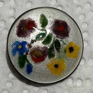 Nydelig kombinert anheng og brosje lager av Einar Modahl. I sølv med svart emalje. Blomster i rød, gul, blå, hvit og grønn emalje. Perfekt emalje. Diameter 3cm. Sender med Posten, PostNord eller fiksferdig